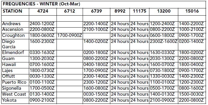 Military, government, and civilian Shortwave / HF radio network frequencies